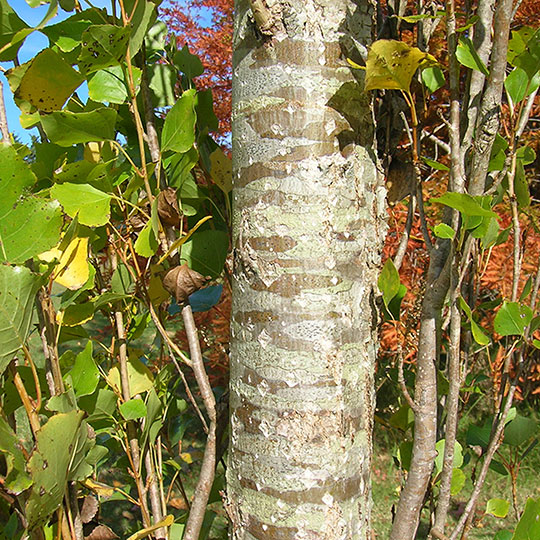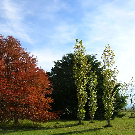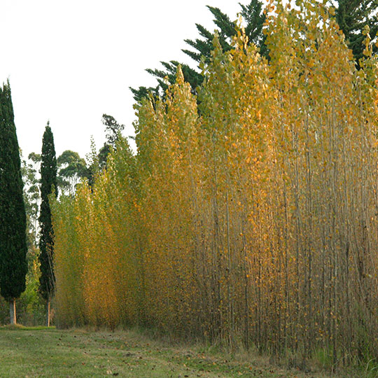 Árbol de follaje caduco, de porte piramidal, de rápido crecimiento, alcanzando unos 25 metros de altura. Follaje verde brillante que en otoño toma color amarillo. Sus ramas no crecen horizontalmente sino en sentido vertical y desde muy abajo del tronco.