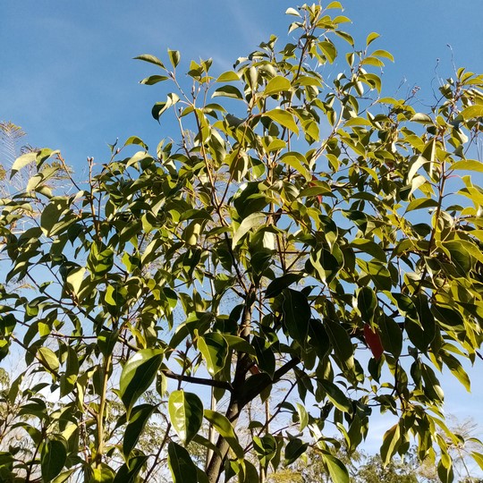 Árbol de follaje perenne, de crecimiento medio alcanzando una altura de 30m. Posee gran una copa de forma cónica, su follaje es verde oscuro bien brillante con aroma mentolado. Debe estar plantado por lo menos a 10m de la edificación más cercana. Origen: Asia