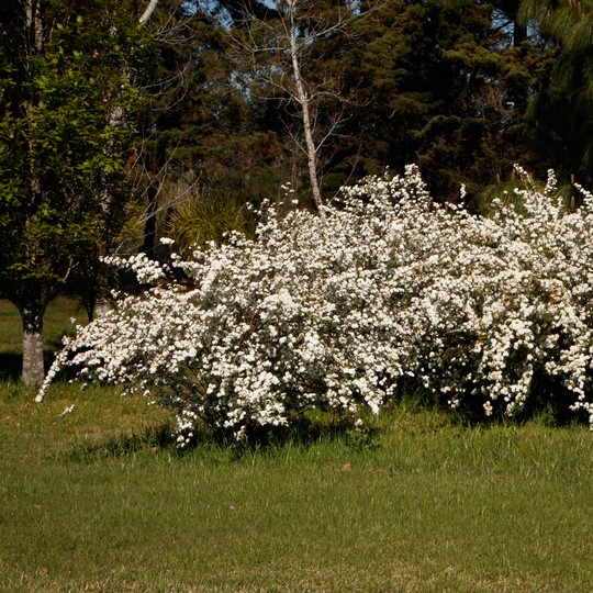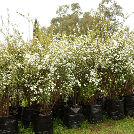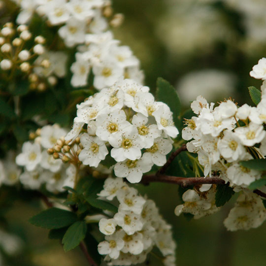 Arbusto de follaje caduco, de crecimiento medio pudiendo alcanzar hasta 2m de alto. Posee un porte globoso, sus hojas son pequeñas de color verde oscuro. Es una planta con un alto valor ornamental ya que sus ramas se llenas de flores blancas en primavera, se destaca en cada jardín que se utiliza. Se puede usar de forma aisladas, en conjunto y generando cerco.