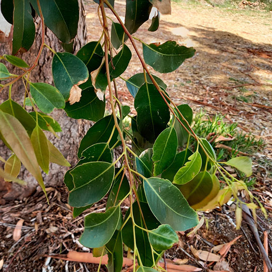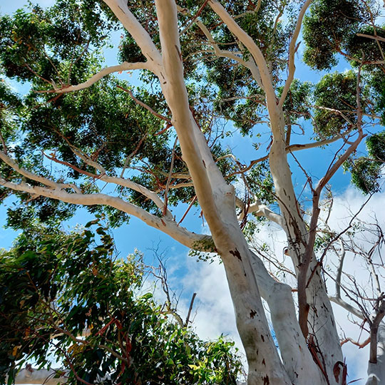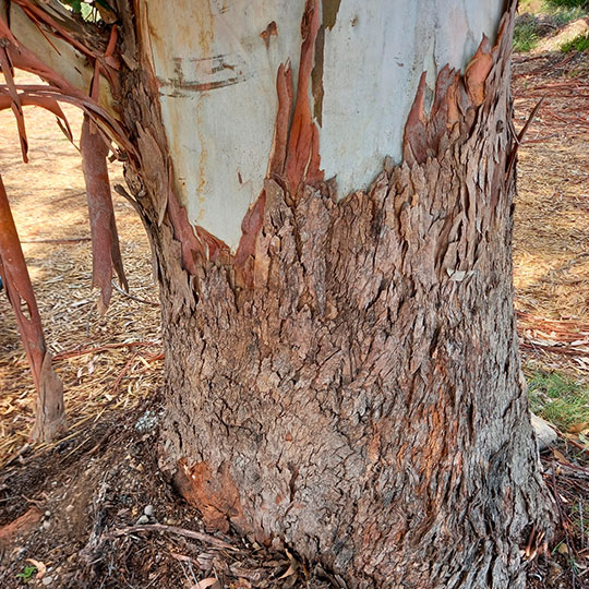 Árbol de follaje perenne, de rápido crecimiento alcanzando los 50m de altura. Posee una copa columnar, su corteza es suave, lisa y de color blancuzco en la en la mayoría del tronco, mientras que en la base es color gris amarronada y escamosa.