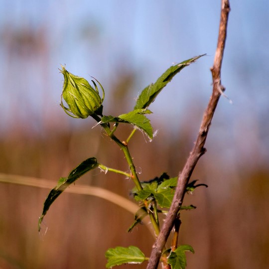 Árbusto palustre híspido, provisto de aguijones, de múltiples tallos. Follaje caduco de color verde claro. Posee hojas simples, flores grandes rosadas y solitarias. El fruto es una cápsula híspida cubierta por el cáliz, también híspido, semillas numerosas y de color marrón oscuro. Florece en primavera verano y fructifica en otoño.