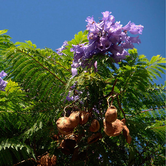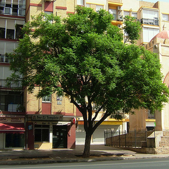 Árbol de follaje caduco, de crecimiento medio alcanzando los 15m de alto. Posee una copa globosa irregular que se extiende a modo de gran sombrilla. Su follaje es color verde acompañado de un tronco color grisáceo. Es un árbol con un alto valor ornamental por su abundante floración color lila en primavera, provee una sombra ligera. Se utilizada como árbol de alineación, de forma aislada o formando grupos.