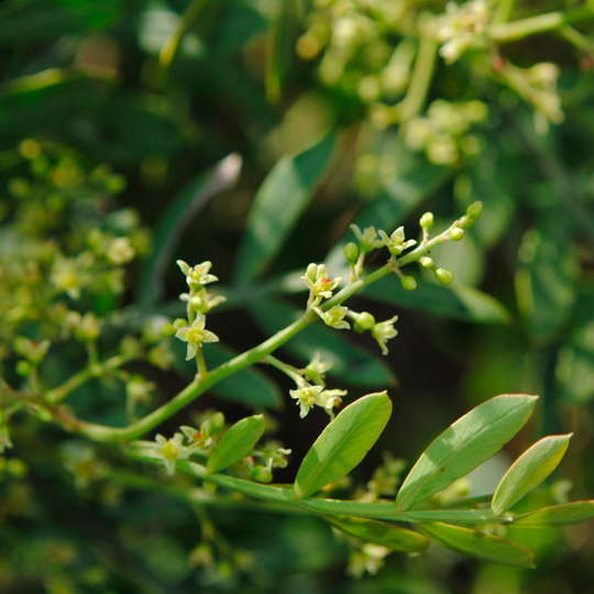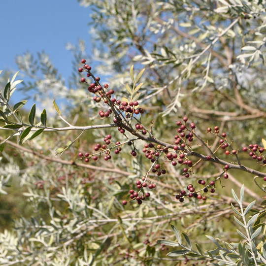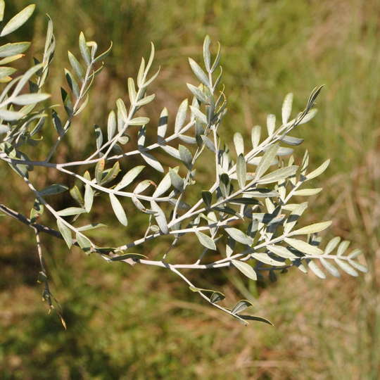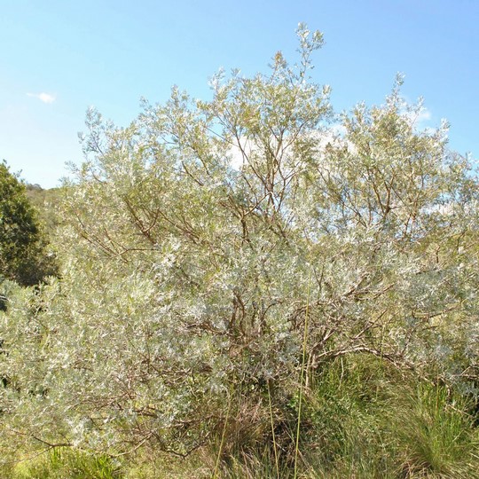 Árbol nativo de follaje perenne, de crecimiento medio pudiendo alcanzar hasta 8 m de alto. Posee un porte globoso muy ramificado, sus hojas con de color verde grisáceo. Es una planta que está comenzando a ser utilizada en los jardines para generar contraste por su follaje gris y sus frutos rojisos.