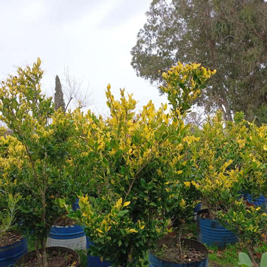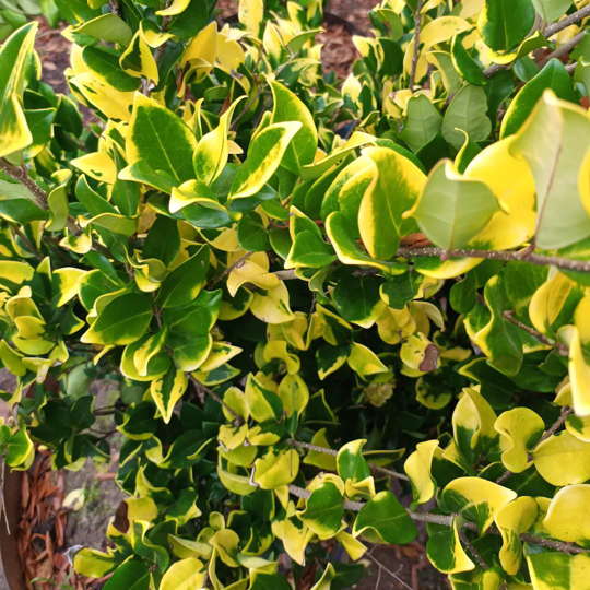 Arbusto de follaje perenne, de rápido crecimiento pudiendo alcanzar los 4m de alto. Su porte es globoso, sus hojas son color verde brillante con amarillo. Es una planta muy utilizada en la jardinería por su rusticidad en cuanto al clima y a los suelos, no tolera suelos encharcados. Es utilizada sobre todo para hacer cercos por su denso follaje.