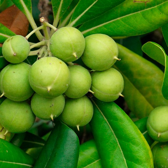 Pittosporum tobira Arbusto de follaje perenne, de rápido crecimiento pudiendo alcanzar hasta 4m de alto. Posee un porte globoso con follaje denso, sus hojas son color verde brillante. Es una planta que se utiliza mucho en los jardines por su rusticidad, tolerancia al viento salino y sus flores blancas tienen aroma.
