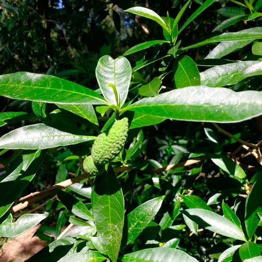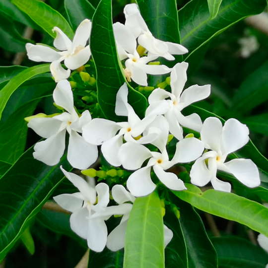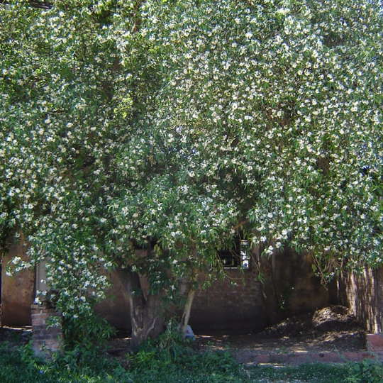Árbol de entre 3 y 10 metros de altura, y de tallos glabros (glabrescentes con la edad). Tiene un follaje agradable y florece de octubre a mayo. La inflorescencia es erecta, con un número variado de flores de corola blanca y aroma perfumado. El fruto es carnoso y folicular, de color amarillo a anaranjado-rojizo al madurar. Origen: América del Sur