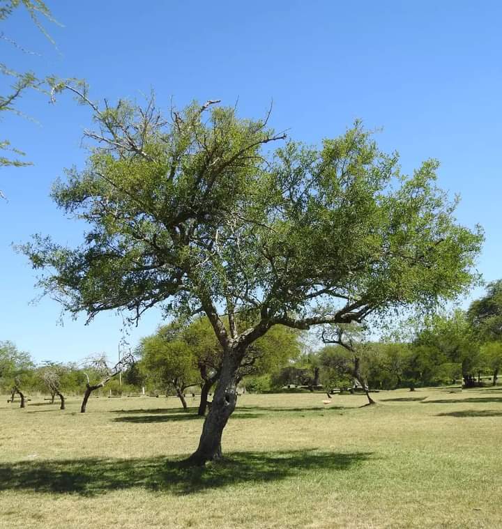Árbol espinoso que crece de 6 a 8 metros de altura. Posee un tronco castaño claro tortuoso o recto y corteza asurcada. Su follaje es semipersistente, finalmente caduco, de color verde claro. Las flores son pequeñas de color verdoso y su fruto comestible de sabor dulce y color amarillo anaranjado.