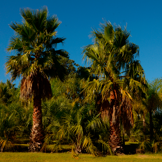 Palmera originaria de áreas subdesérticas de California, EEUU. También conocida por el nombre común de Palma de California. Llega a alcanzar 10 metros de alto. Sus hojas son palmadas y presenta un tronco robusto. Es ideal para condiciones de veranos calurosos y en invierno resiste a las heladas de corta duración de hasta 10 grados bajo cero. Tolera la falta de agua, vientos salino, suelos pobres. Requiere mucho sol.